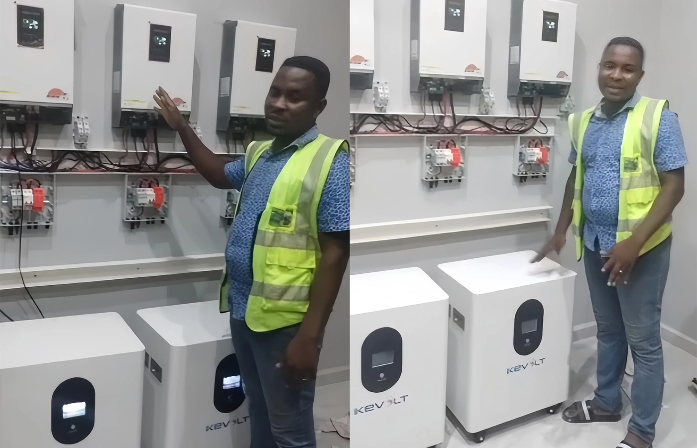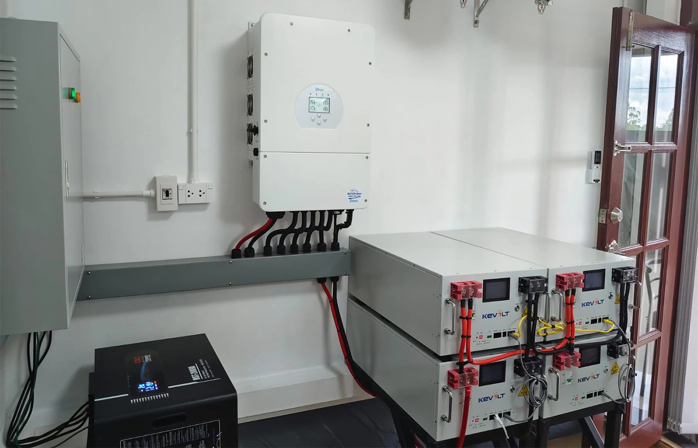 2*51.2V300Ah energy storage batteries, 3*5.5kW KEVOLT inverters, 27*550W solar panels